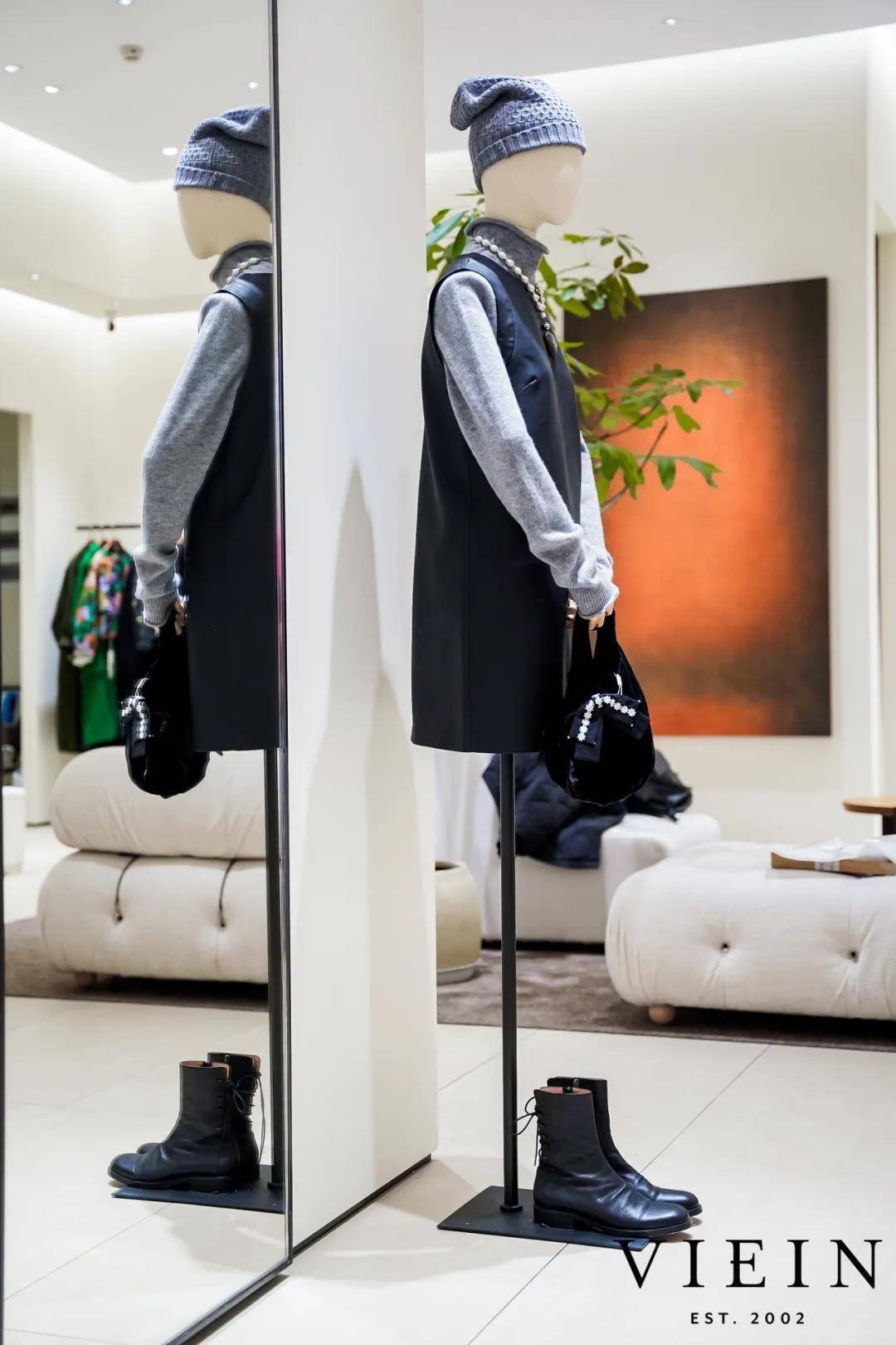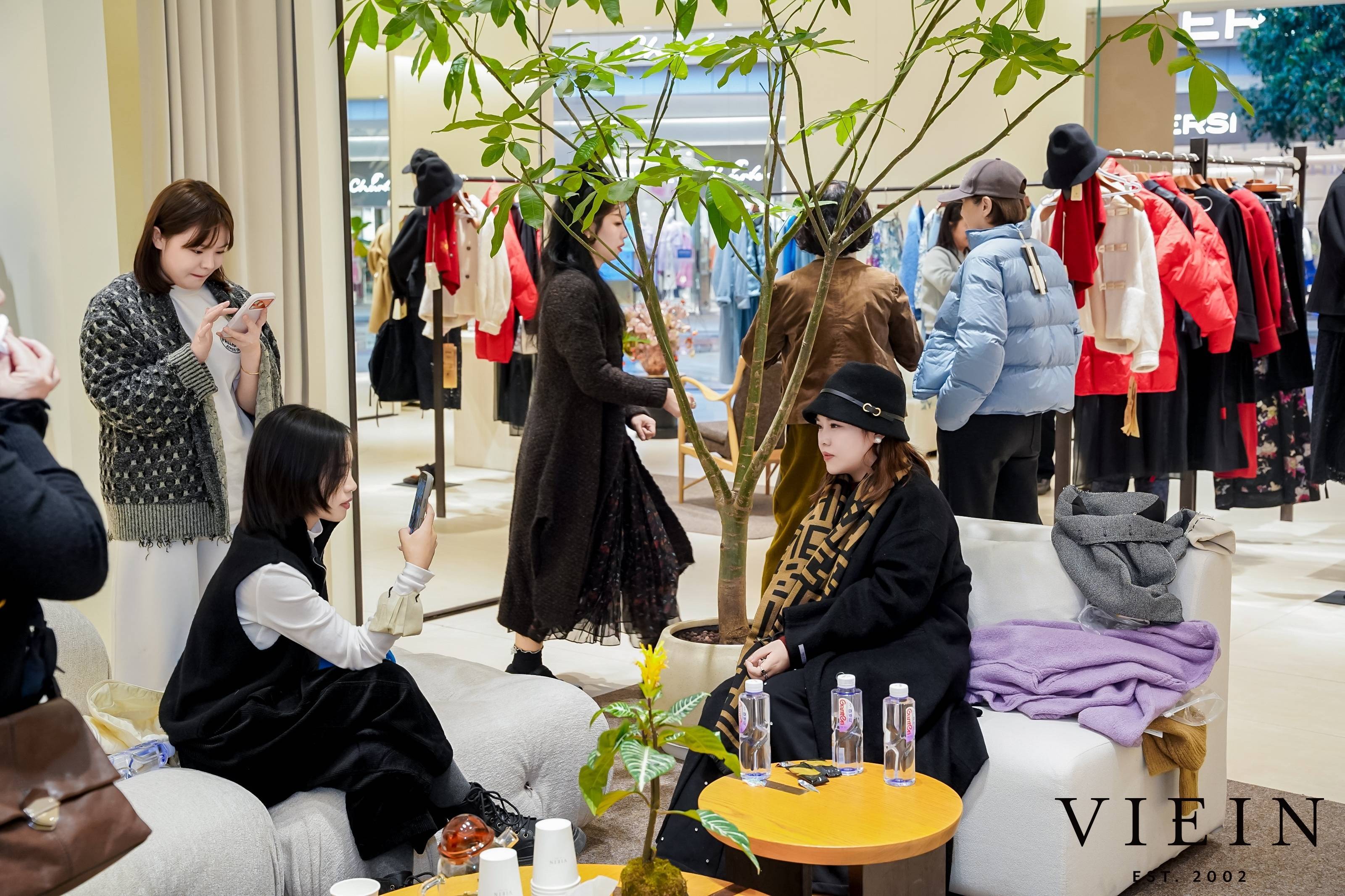 “除了服装本身与门店空间的质感呈现,我们更注重消费体验的完整性。”武汉玮言销售有限公司总经理郑晓丽介绍,升级后的门店实现了休息区与销售区的有机互动,同时集结EIN、茶愫、任莉苏等四大品牌2025年秋冬最新系列,并推出多重促销优惠,让消费者在沉浸式环境中一站式感受中高端女装的设计魅力与性价比。